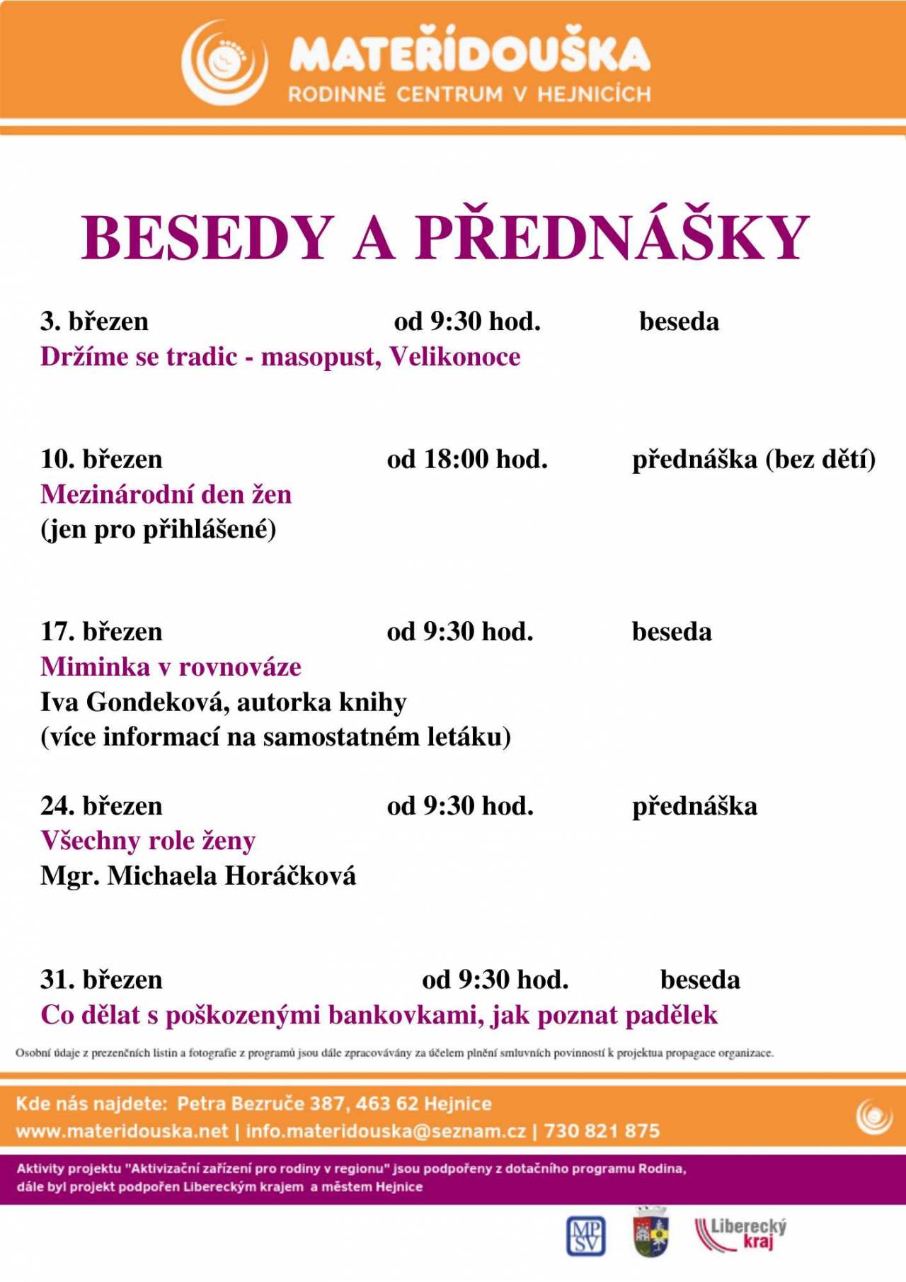 31. března 2020 od 9.30 hodin v Centru Mateřídouška v Hejnicích.