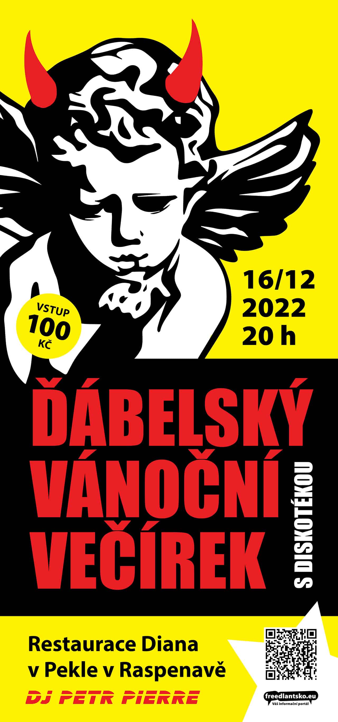 202216prosinec(prosinec 16)20.00so17(prosinec 17)1.00Ďábelský vánoční večírek s diskotékouPeklo / Restaurace Diana, Peklo 412, 464 01 Raspenava, Česko20.00 - 1.00 (17)(GMT+01:00) Druh akceAdvent,Diskotéka,Party,Společenská akce,Vánoční akce,Zábava