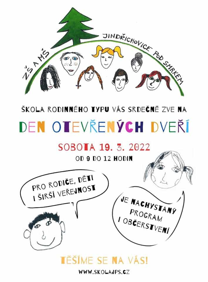 Srdečně zveme rodiče, děti i širší veřejnost na DEN OTEVŘENÝCH DVEŘÍ, který se koná v sobotu 19. 3. 2022 od 9.00 do 12.00 hodin.