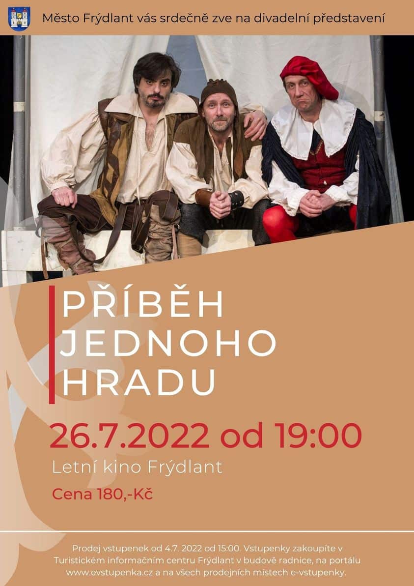 Předprodej vstupenek začíná 4.7.2022 v 15:00 v TIC Frýdlant v budově radnice, na portálu www.evstupenka.cz a na všech prodejních místech e-vstupenky.