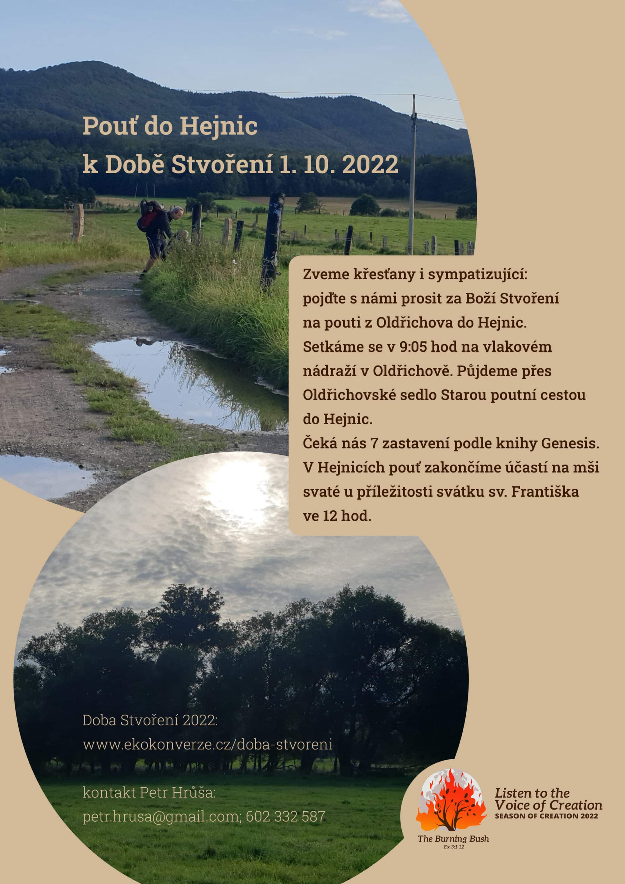 Milí přátelé, zveme vás na pouť organizovanou v rámci Doby stvoření 2022. Od 1. září do 4. října slaví křesťané Dobu stvoření (Season of Creation). V roce 1989 Ekumenický