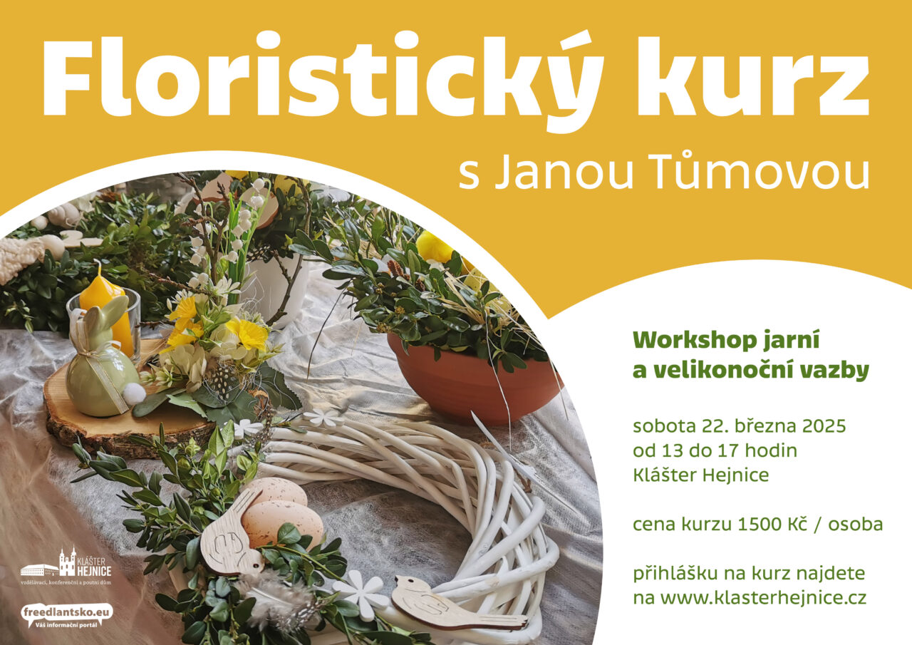 2025so22únor13.0017.00Floristický kurz s Janou Tůmovou v Klášteře HejniceKlášter Hejnice - vzdělávací, konferenční a poutní dům, Hejnice 1, 46362 Hejnice, Liberecký kraj, Česko13.00 - 17.00(GMT+01:00) Druh akceHejnice,Pro seniory,Rodinná akce,Školení,Školy,Veřejná akce,Výstava