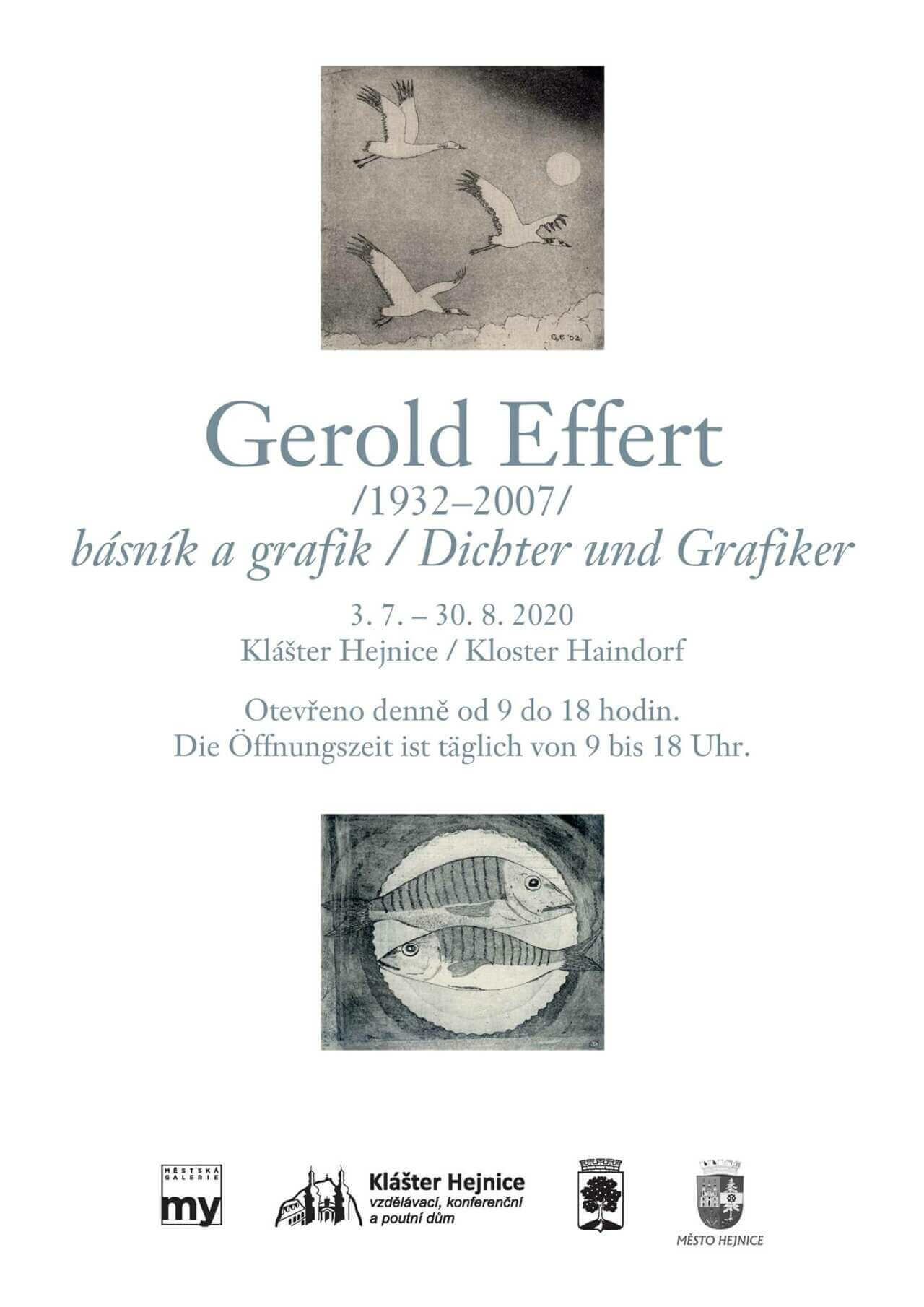 Gerold Effert básník a grafik /1932–2007/ Městská galerie MY Jablonec nad Nisou a Klášter Hejnice Vás srdečně zvou na výstavu připomínající tvorbu spisovatele a výtvarníka Gerolda Efferta, rodáka z Krkonoš. Výstavu zahájí