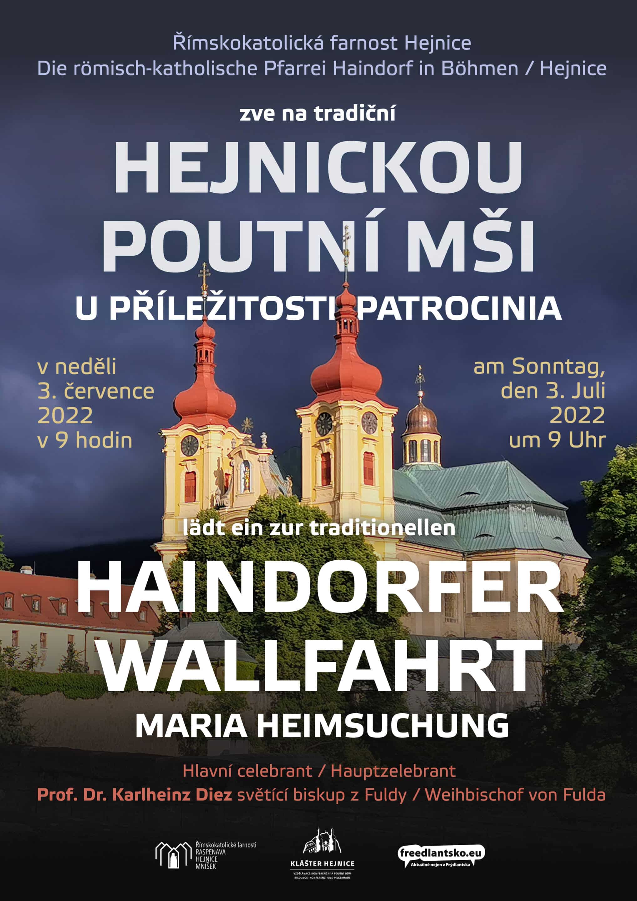 Die römisch-katholische Pfarrei Haindorf in Böhmen/ Hejnice lädt ein zur traditionellen Haindorfer Wallfahrt Maria Heimsuchung am Sonntag, den 3. Juli 2022 um 9 Uh.