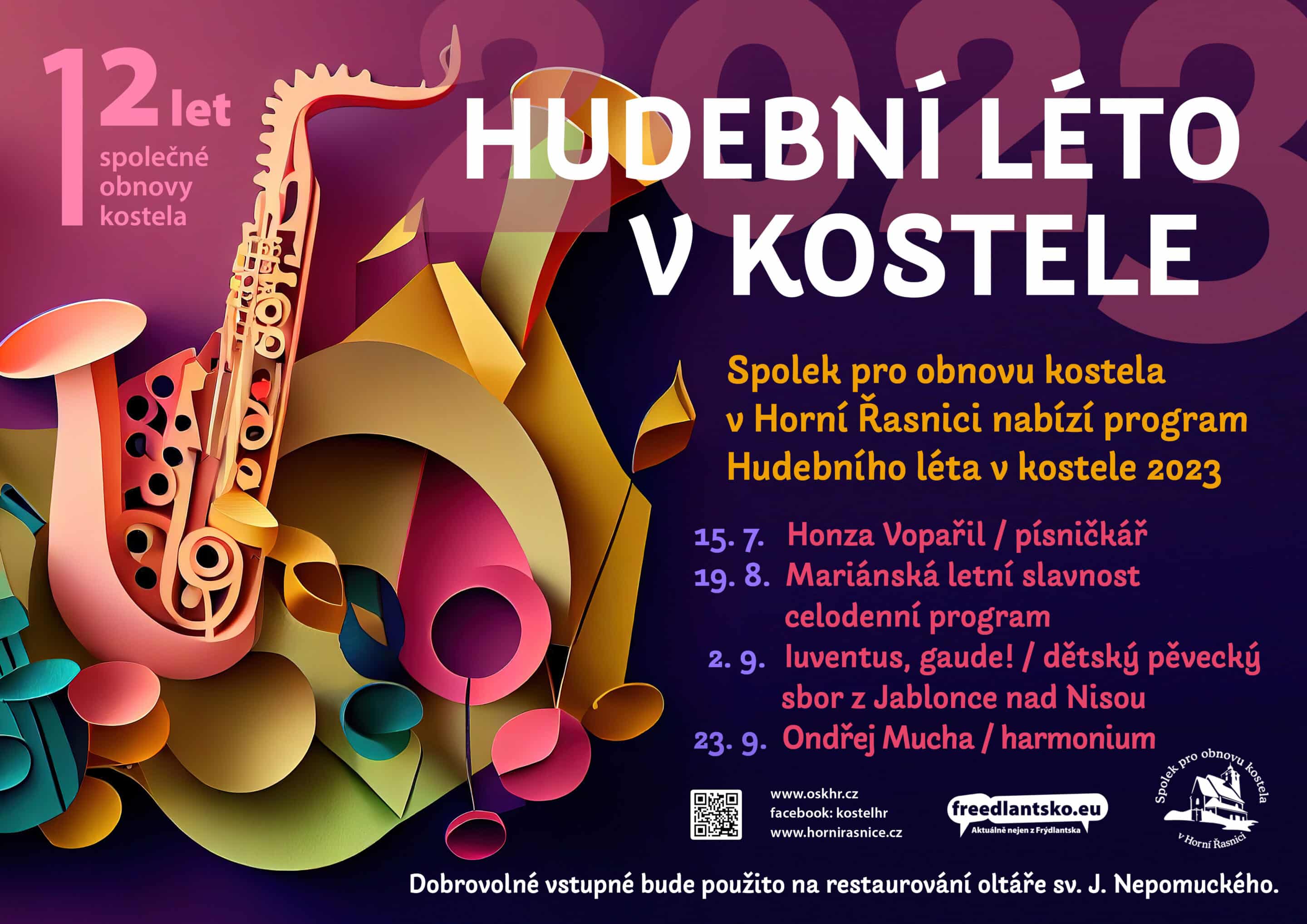 Spolek pro obnovu kostela v Horní Řasnici nabízí program Hudebního léta v kostele 2023. 15. 7. Honza Vopařil (písničkář) 19. 8. Mariánská letní slavnost