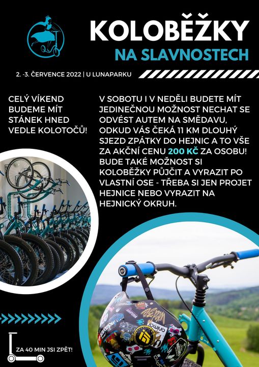 Na Hejnických slavnostech 2. července a 3. července 2022 budeme nabízet jedinečné zpestření v podobě projížďky na koloběžkách.