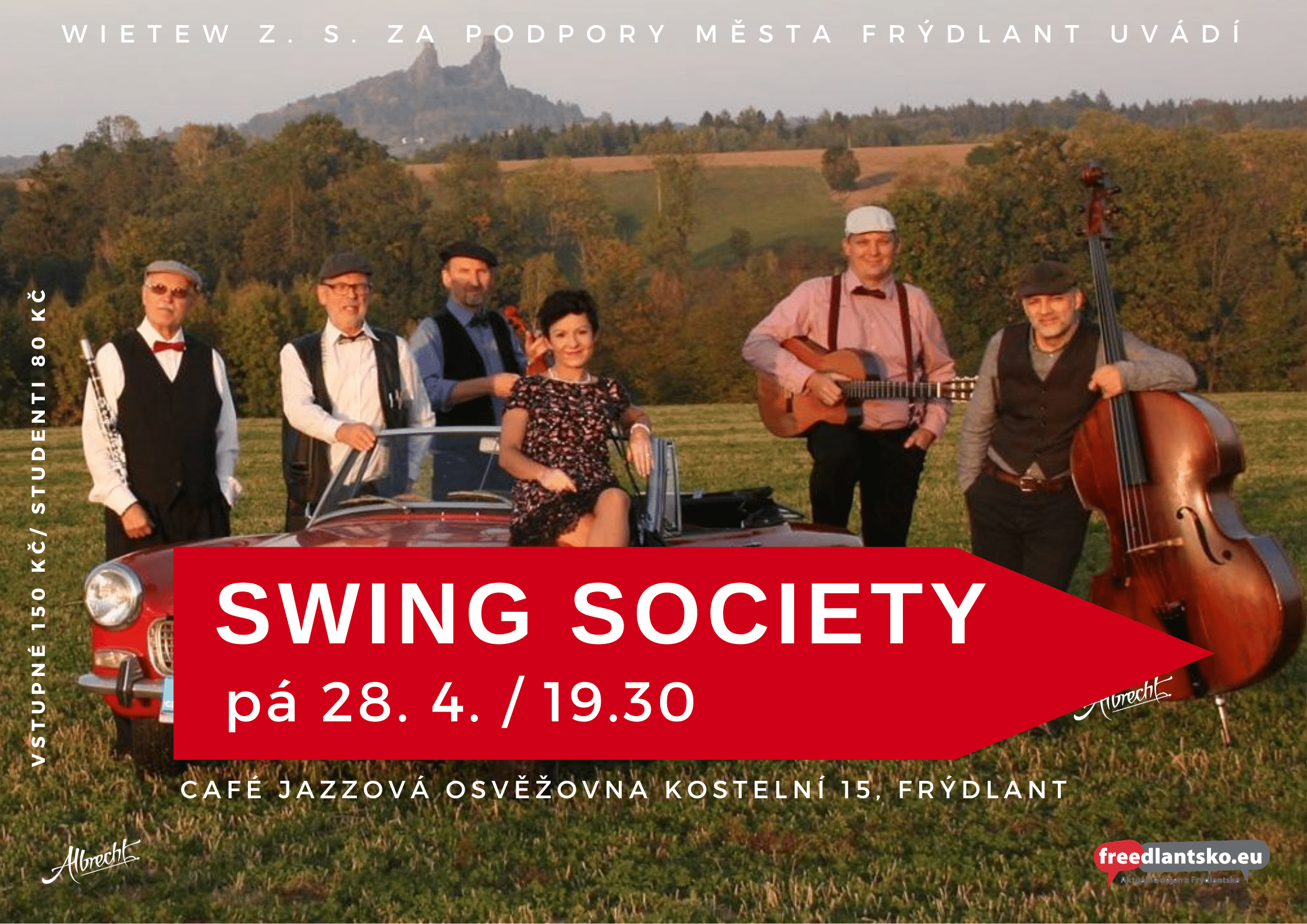 zveme vás na koncert Swing Society k nám do Osvěžovny v pátek 28. dubna v 19:30 hodin.