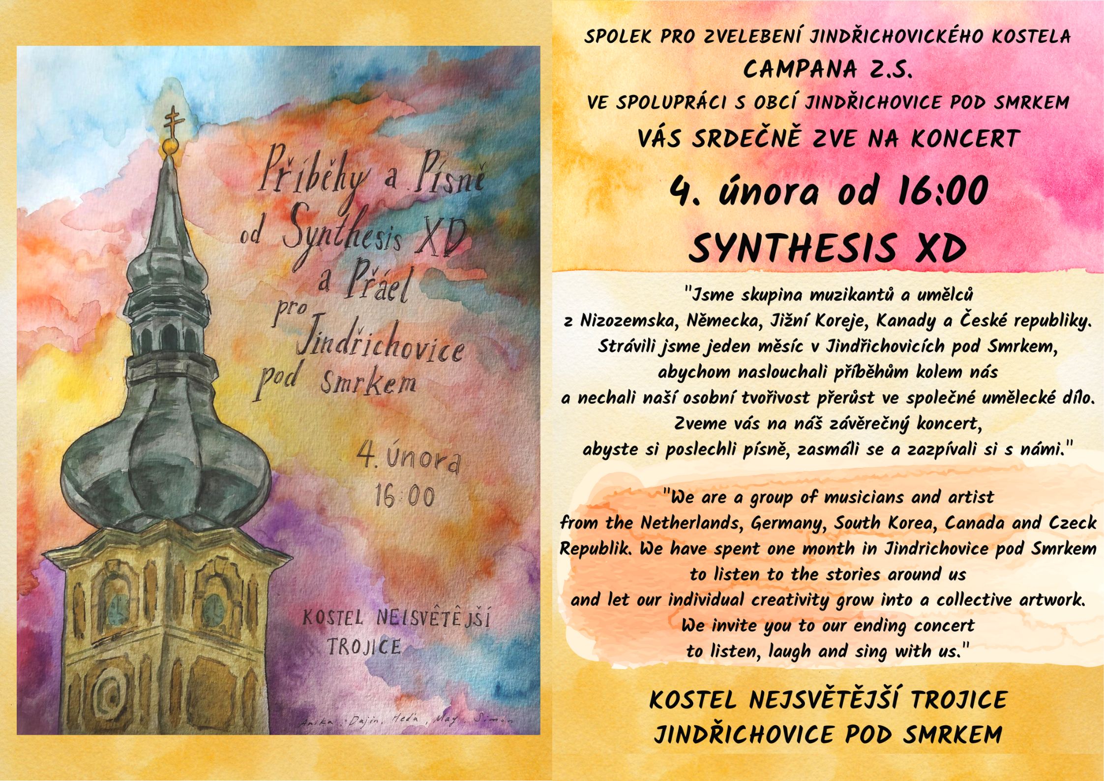 Spolek pro zvelebení jindřichovického kostela Campana, z.s. ve spolupráci s  obcí Jindřichovice pod Smrkem vás v sobotu 4. února 2023 od 16.00 hodin srdečně zvou na koncert Synthesis XD.