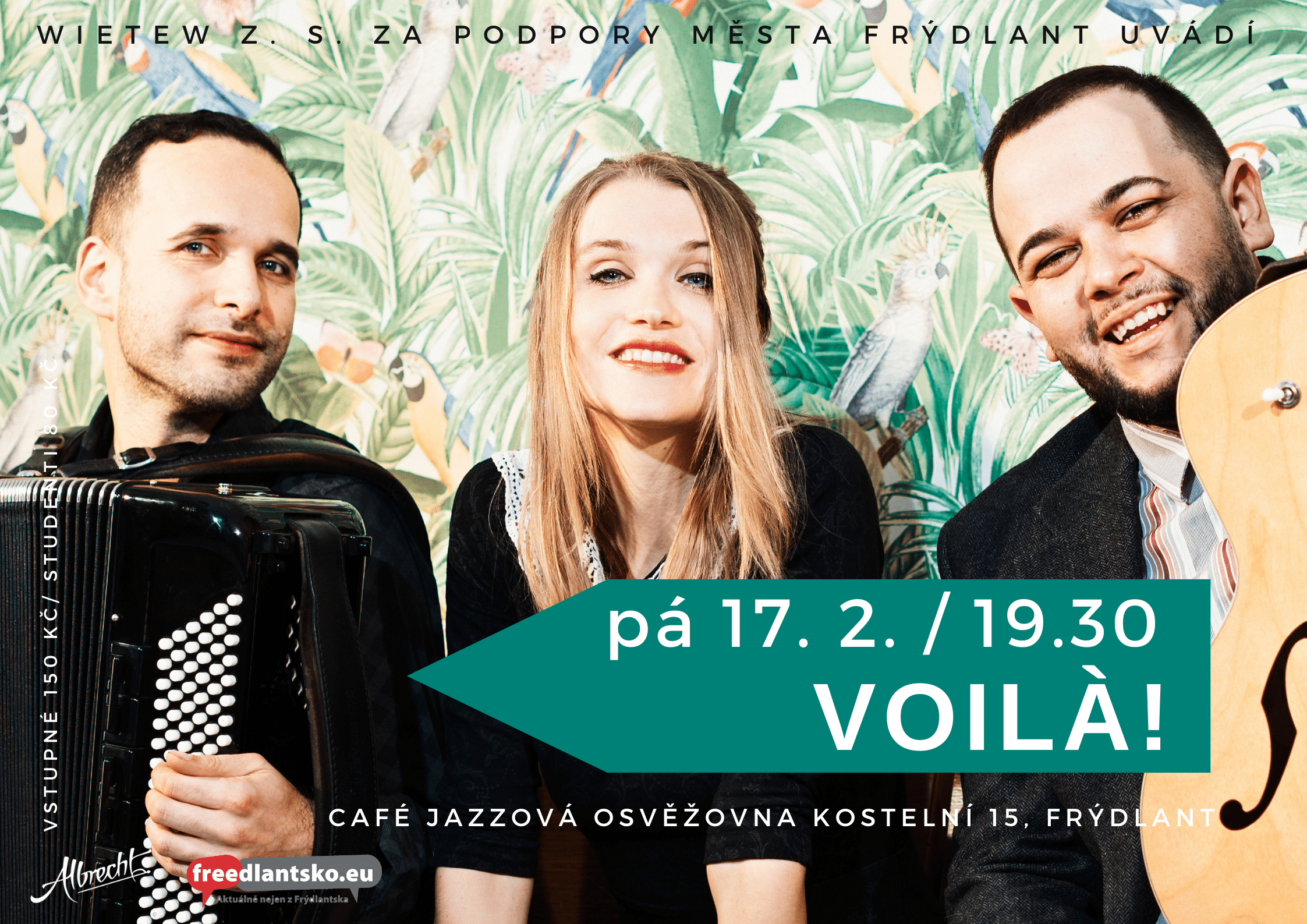V pátek 17. února 2023 od 19.30 hodin vás zveme do CAFE JAZZOVÁ OSVĚŽOVNA na koncert kapely VOILA!