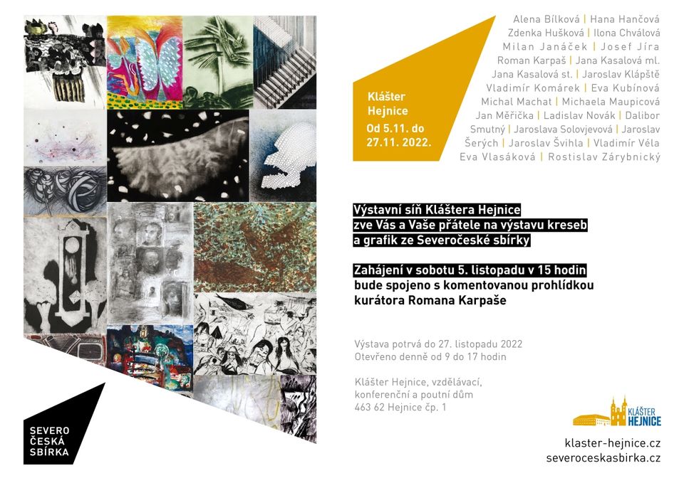 Výstava kreseb a grafik ze Severočeské sbírky sestavená kurátorem Romanem Karpačem se koná ve dnech 5. listopadu až 27. listopadu 2022 ve výstavní síni Kláštera Hejnice.