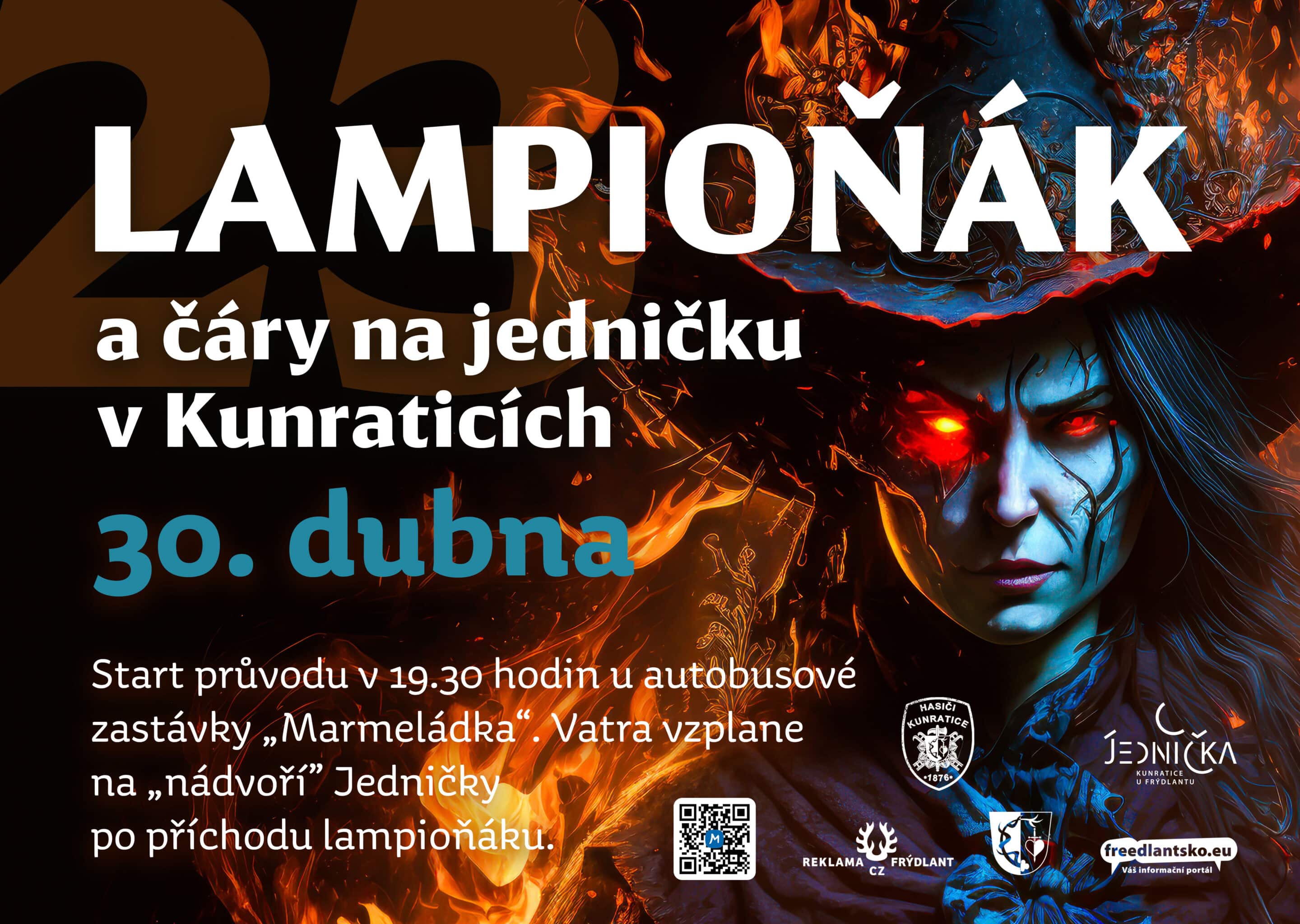 Obec Kunratice vás zve 30. dubna 2023 na Lampioňák a čáry na jedničku v Kunraticích.