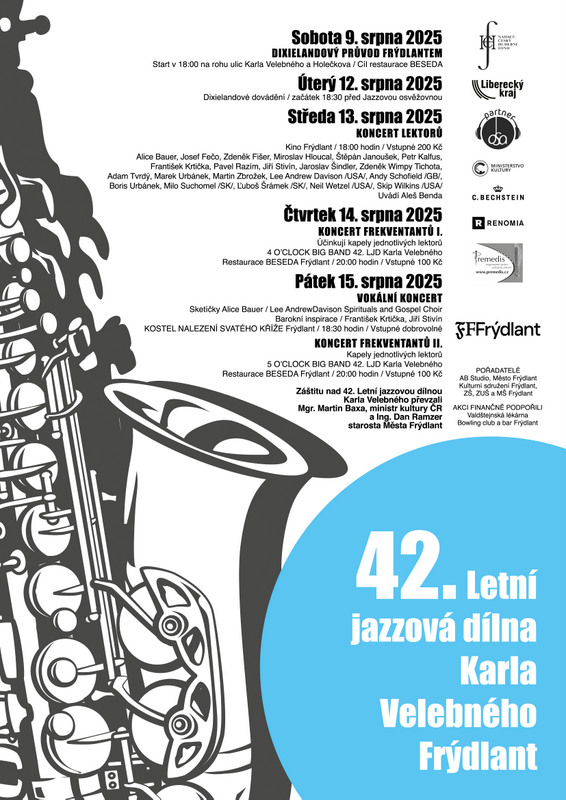 Frýdlant rozezní jazz! Letní jazzová dílna Karla Velebného slaví 42. ročník a město opět ožije hudbou, improvizací a skvělou