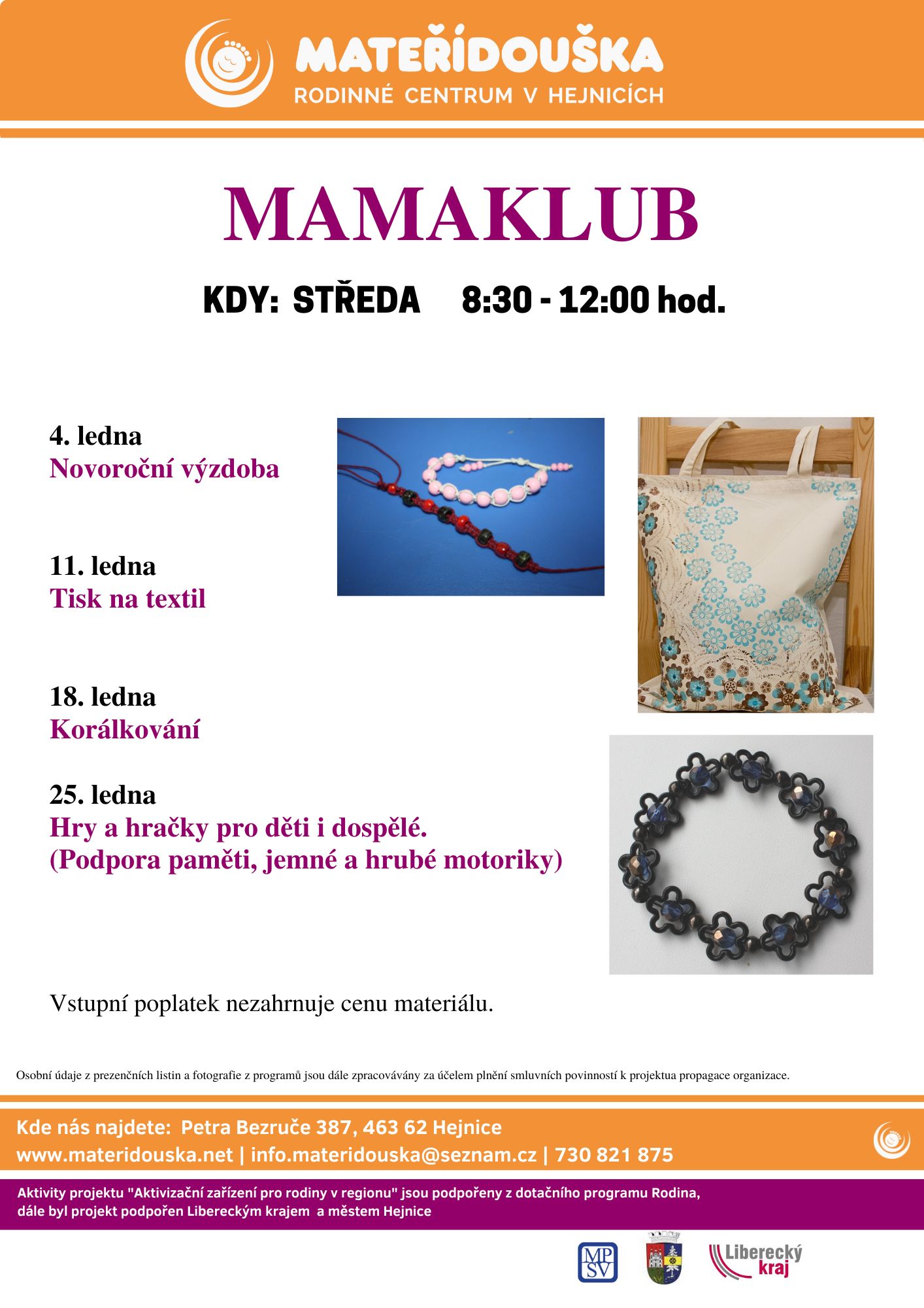 KDY: STŘEDA 8:30 – 12:00 hod. Vstupní poplatek nezahrnuje cenu materiálu. V případě zájmu, po dohodě s přihlášenými účastníky možné program realizovat v přírodě. Z důvodů omezeného počtu účastníků prosíme