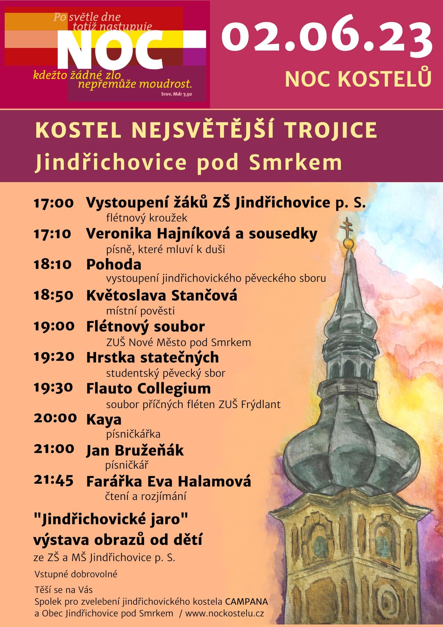 Spolek pro zvelebení jindřichovického kostela Campana, z.s. a obec Jindřichovice pod Smrkem vás na letošní Noc kostelů 2. června 2023 do kostela Nejsvětější Trojice.