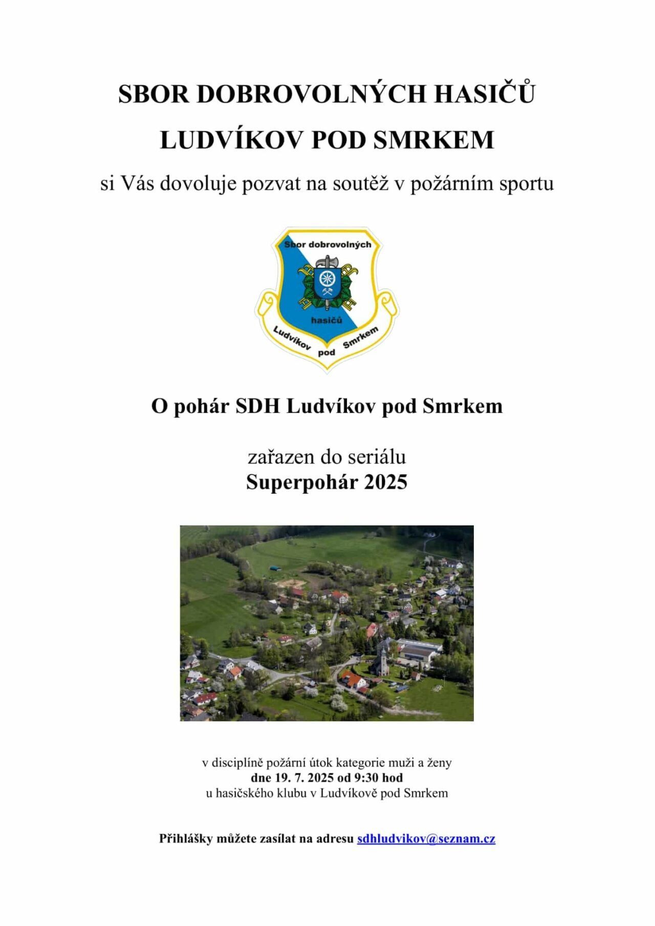 V sobotu 19. 7. 2025 od 9:30 u hasičské klubovny v Ludvíkově.