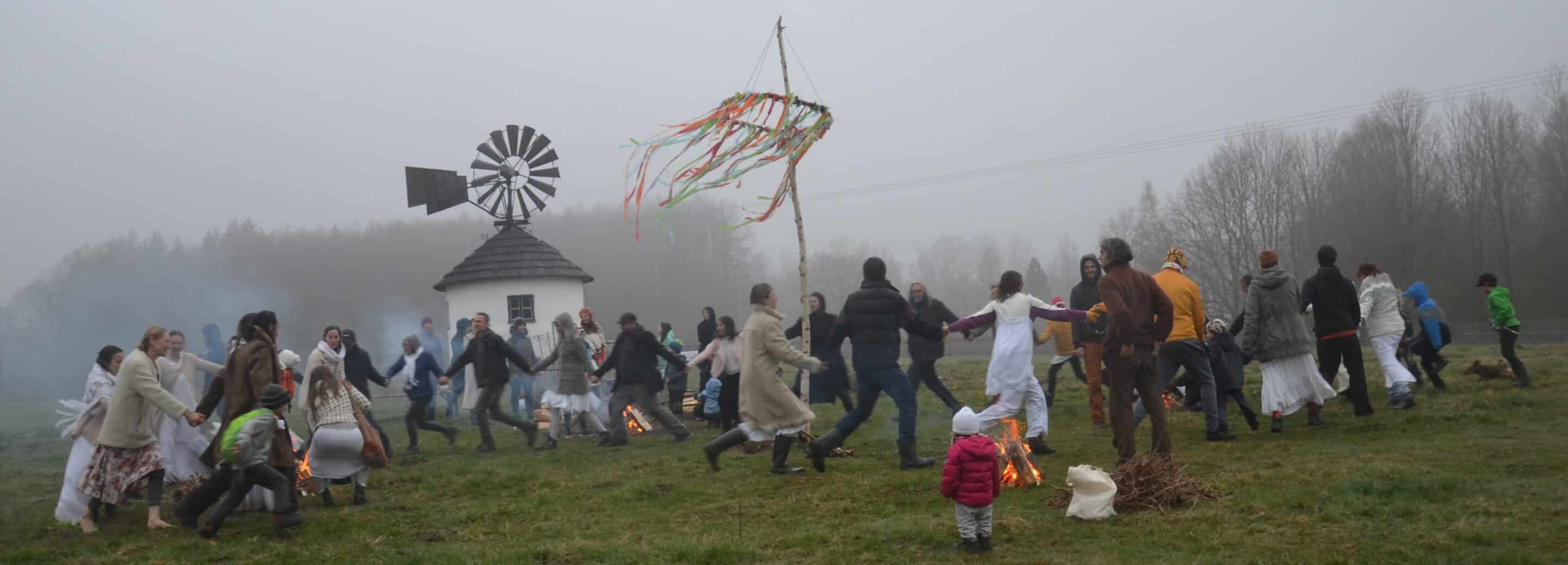 zveme Vás k slavnosti v rozpuku jara, k oslavě souladu, lásky, plodnosti a radosti. V čase pokračujícího vzestupu slunečního ohně se spojme v pletení věnců, přípravách máje, ohňového kruhu, přírodních loučí, ohňových košťat i nás samotných a koní ke slavnostní jízdě. Pak v obřadu samotném se spolu radujme z předávání léčivé vody, v posvátném tichu zažehnutí živého ohně, ve zpěvu, tanci i hraní, metání košťat, přeskakování ohňů, hodování i v nočním rozjímání …