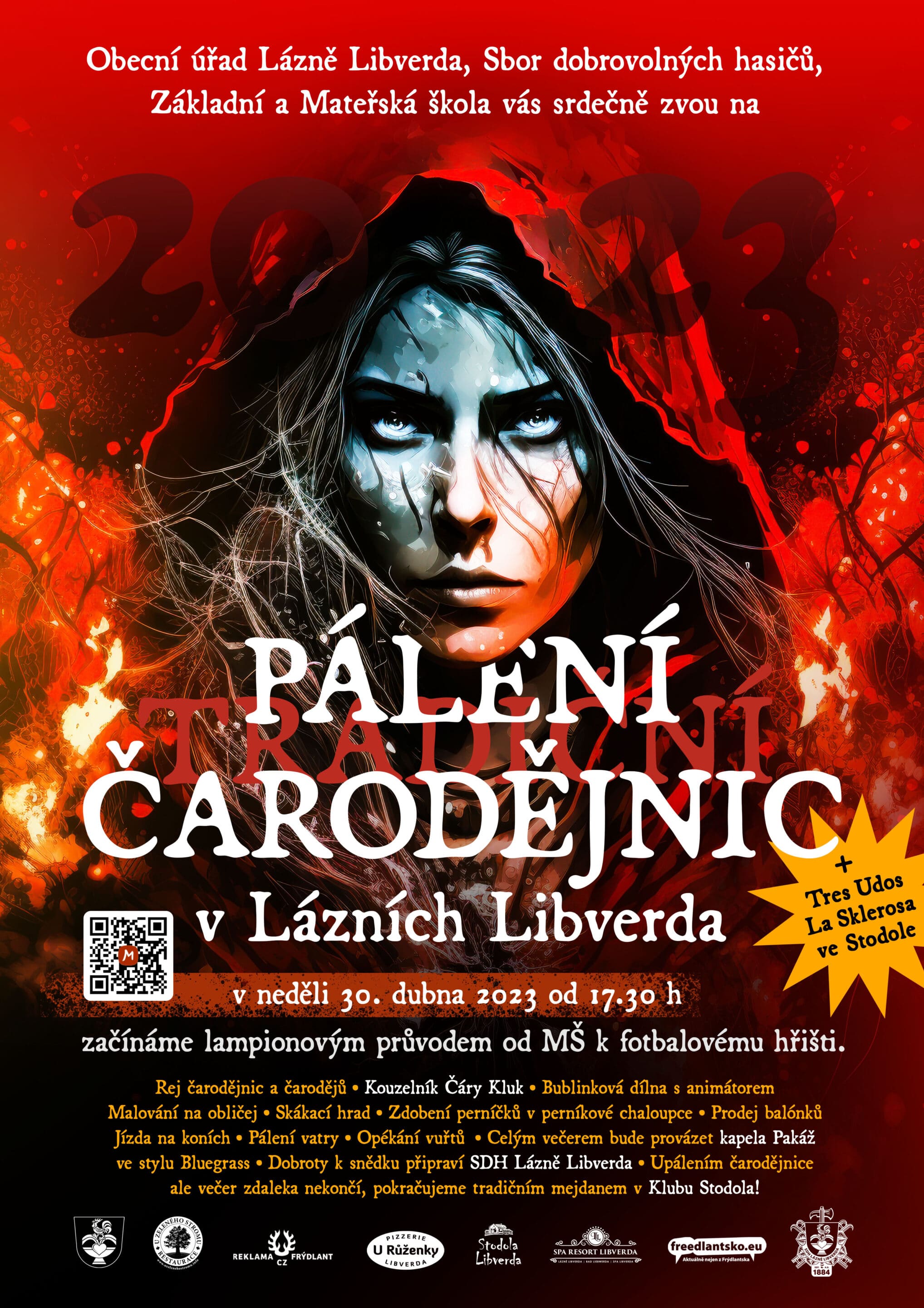 Obecní úřad Lázně Libverda, Sbor dobrovolných hasičů, Základní a Mateřská škola vás srdečně zvou na tradiční Pálení čarodějnic v Lázních Libverda v neděli 30. dubna 2023.