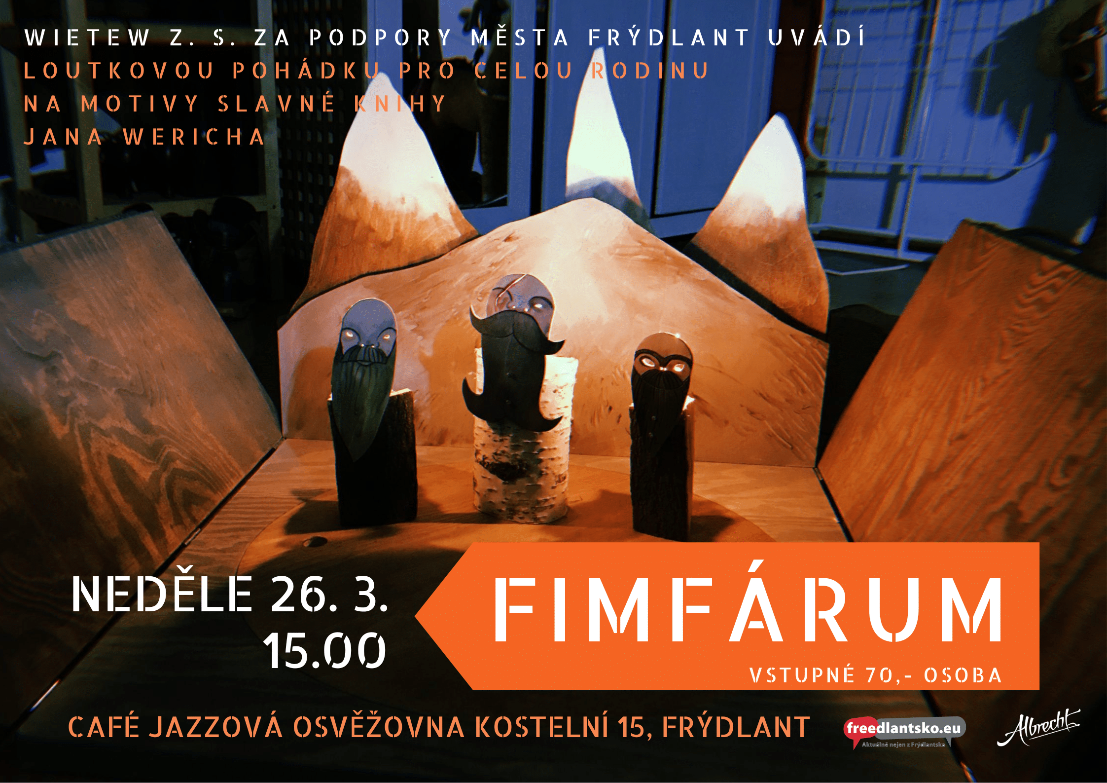 Zveme Vás opět na pohádku do kavárny CAFÉ Jazzová Osvěžovna, která se bude konat v neděli 26.3. 2023 od 15.00 hodin. Tentokrát přijede Tomáš Podrazil s Fimfárem na motivy slavné knihy Jana