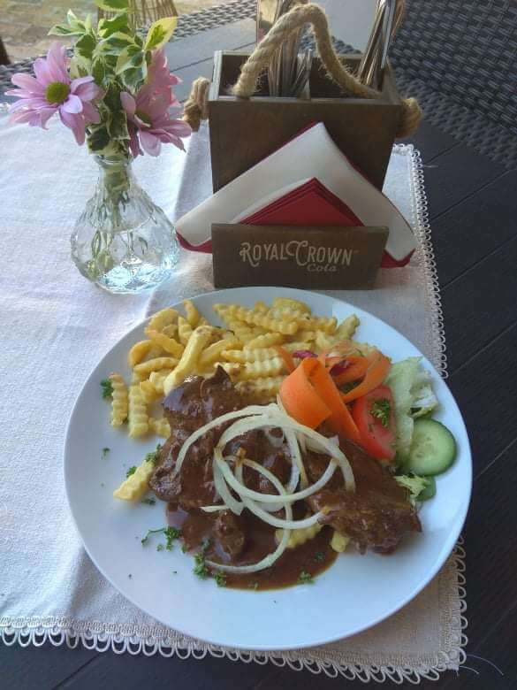Vepřová játra na roštu, brambor nebo hranolky, včetně polévky dle výběru … 130 Kč
