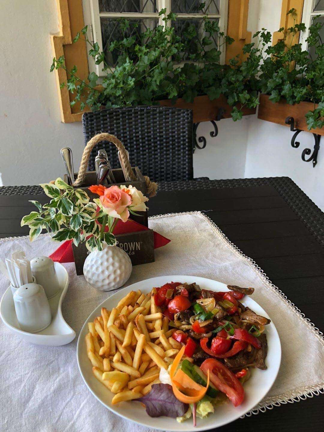 Směs z hovězích nudliček, hranolky, včetně polévky dle výběru … 130 Kč