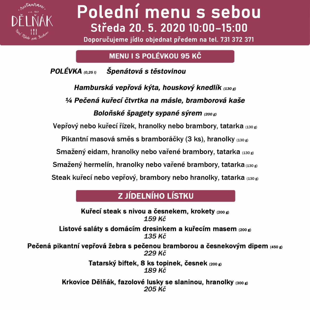Polední menu na středu 20. 5., které pro Vás vaříme od 10:00 do 15:00. 🤩
