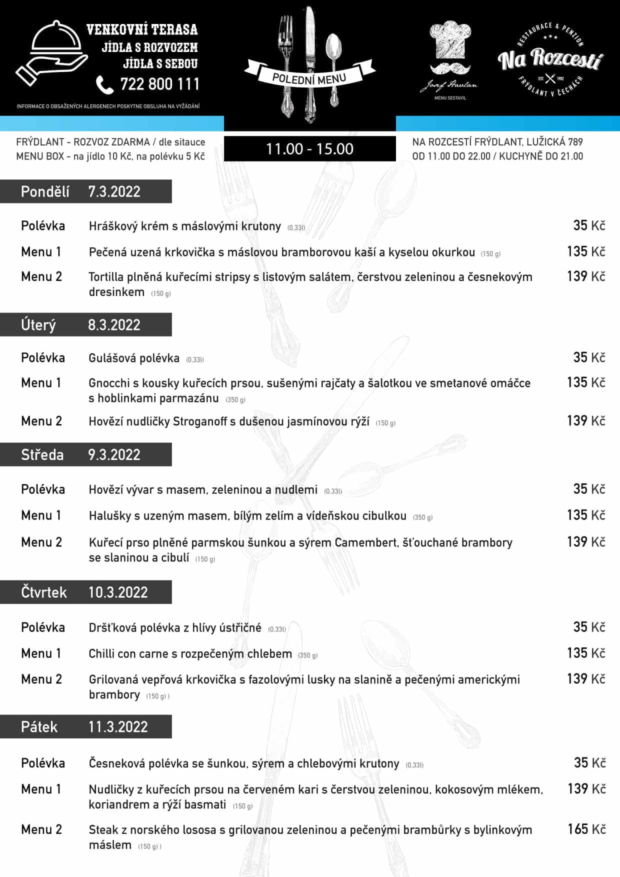Jídla a nápoje z POLEDNÍHO MENU můžete konzumovat přímo v naší restauraci nebo si je můžete objednávat telefonicky na přesný čas a poté