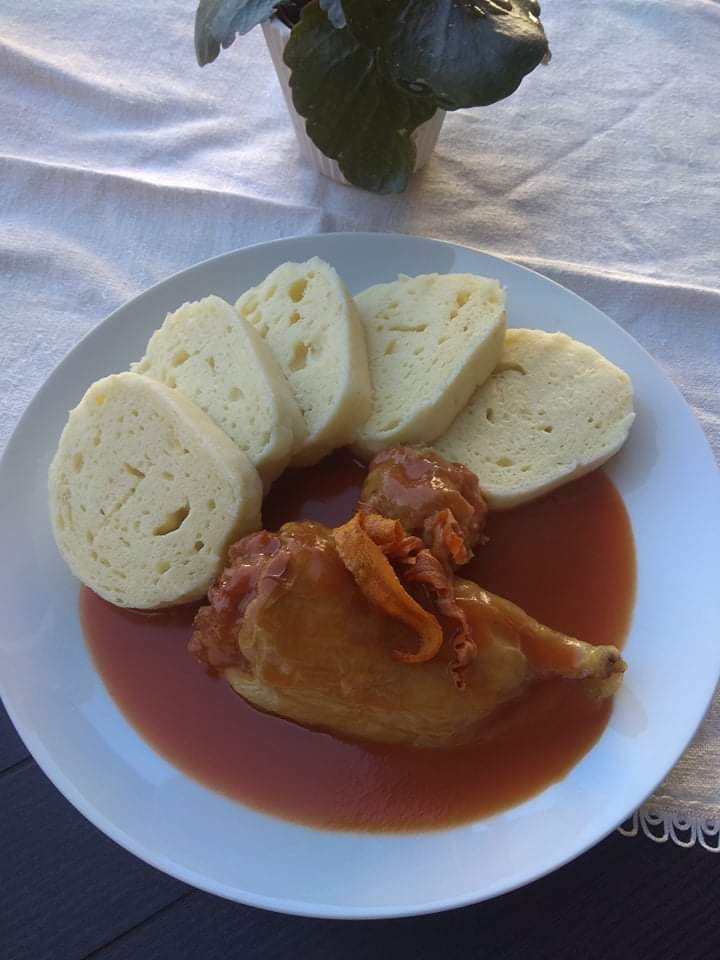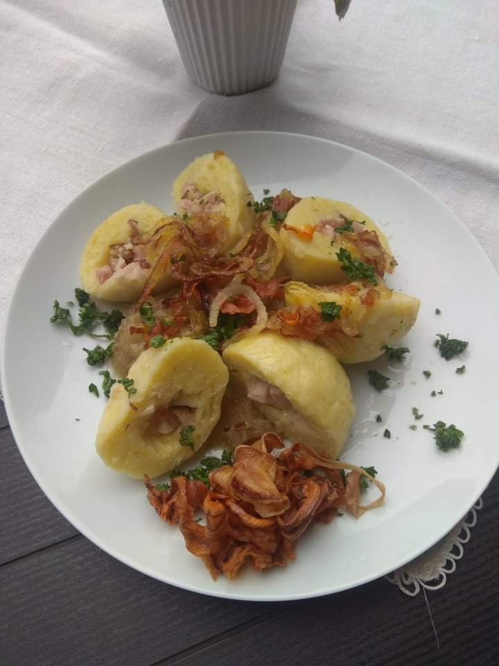 Plněný bramborový knedlíky s masem a zelím …. 119 Kč včetně polévky