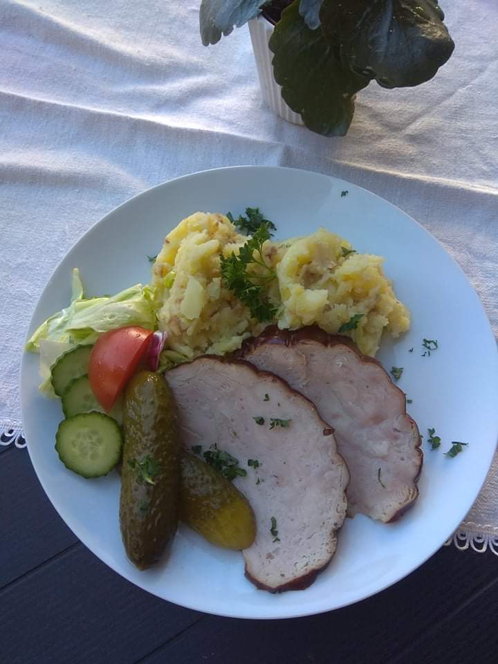 Krůtí uzené maso se šťouchaným bramborem …. 119 Kč včetně polévky