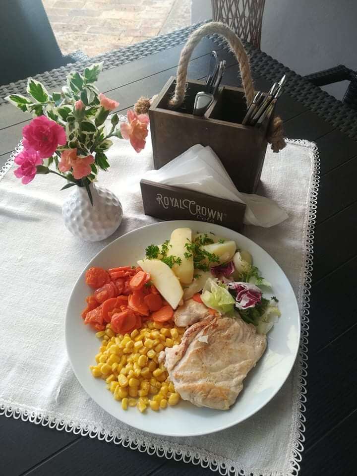 Dušený plátek podávány s dušenou mrkví a kukuřicí, vařený brambor, včetně polévky dle výběru … 119 Kč