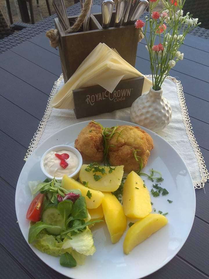 Smažený květák, brambor, tatarka, včetně polévky dle výběru … 119 Kč