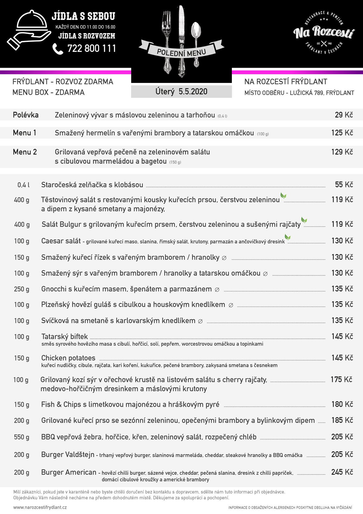 👨🍳 Kompletní menu – úterý 5. 5. 2020