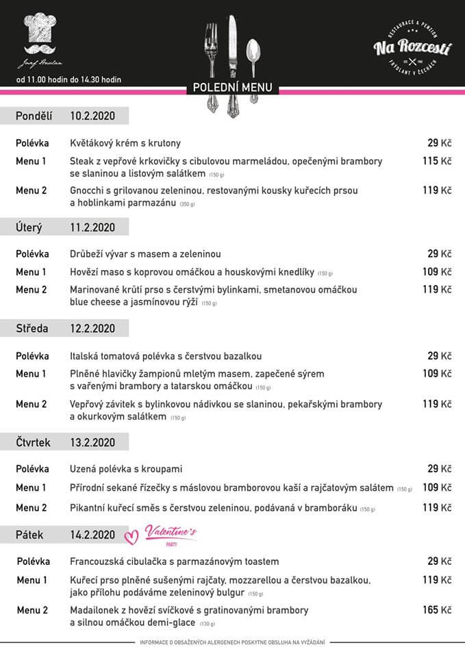 Těšit se můžete na speciální Velentýnské menu, akce na drinky a koktejly, zábavné soutěže o ceny a tradiční DISKOTÉKU s oblíbeným Deejay Benny / 20.00 – 02.00h. Přijďte se bavit!!! ❤️🍽🍷🥃🍹🎧💃🕺