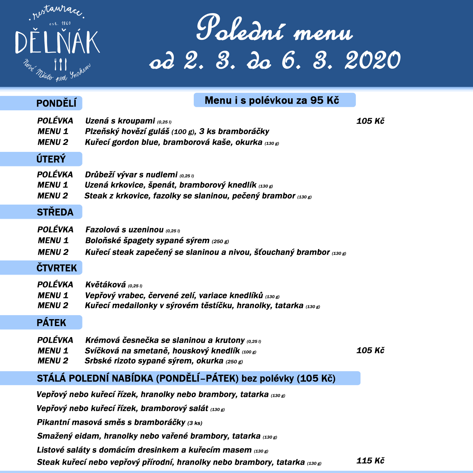 MENU NA TÝDEN 2. 3. – 6. 3. 2020 od 11 h do 14 h, nebo do vyprodání