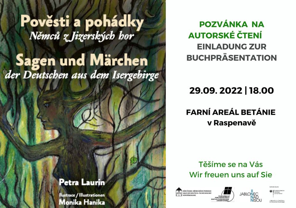 Am Donnerstag, den 29. September 2022 laden wir Sie zur Autorenlesung des Buches Sagen und Märchen der Deutschen aus dem Isergebirge von Petra Lauren in den Pfarrkomplex Betánie in Raspenava ein.