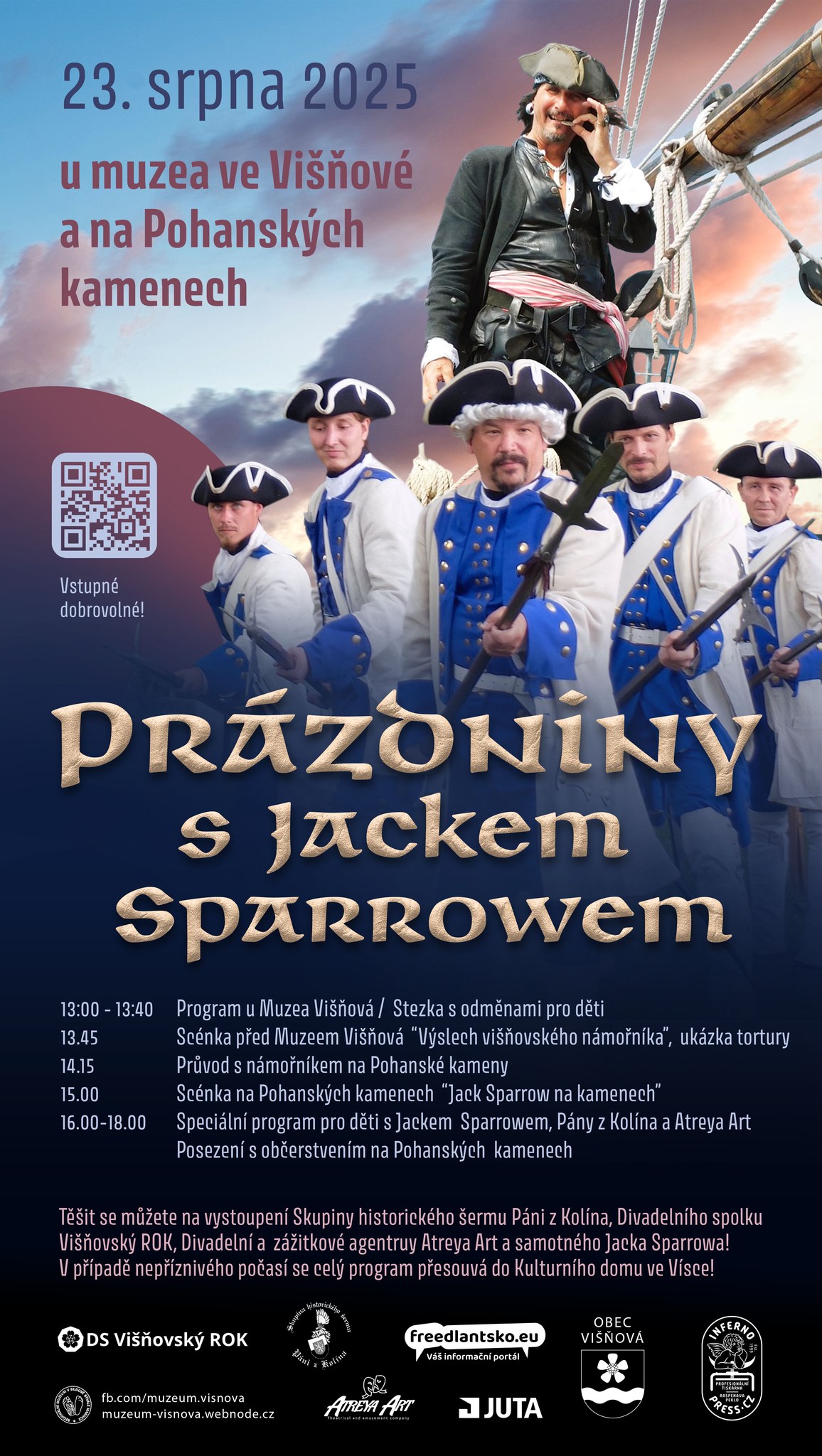 Regionální muzeum ve Višňové pořádá Prázdniny s Jackem Sparrowem. Program na celé odpoledne u muzea ve Višňové a na Pohanských kamenech.Můžete se těšit na: – stezku s odměnami pro děti –