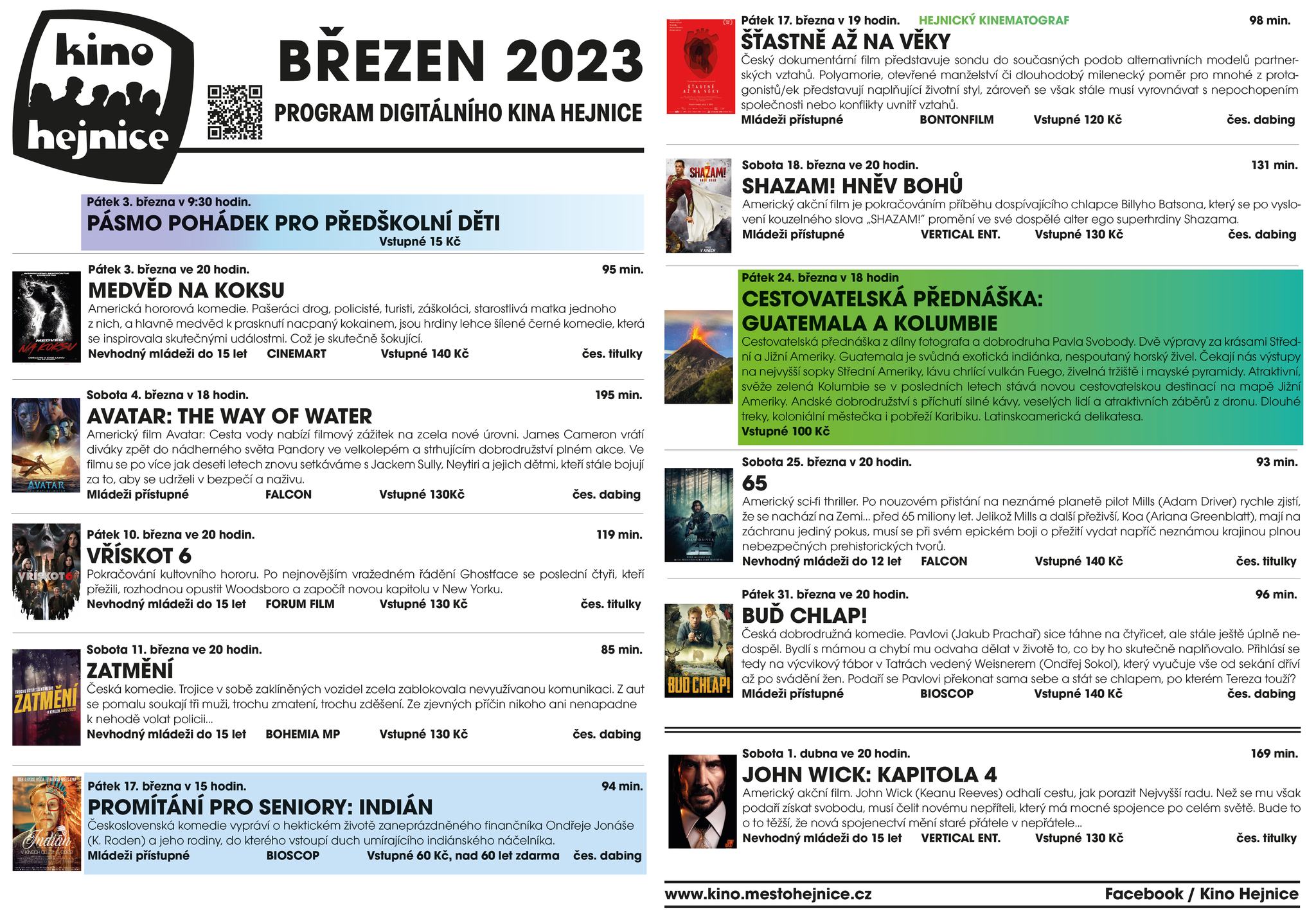 Představujeme Vám program kina Hejnice na měsíc březen 2023.