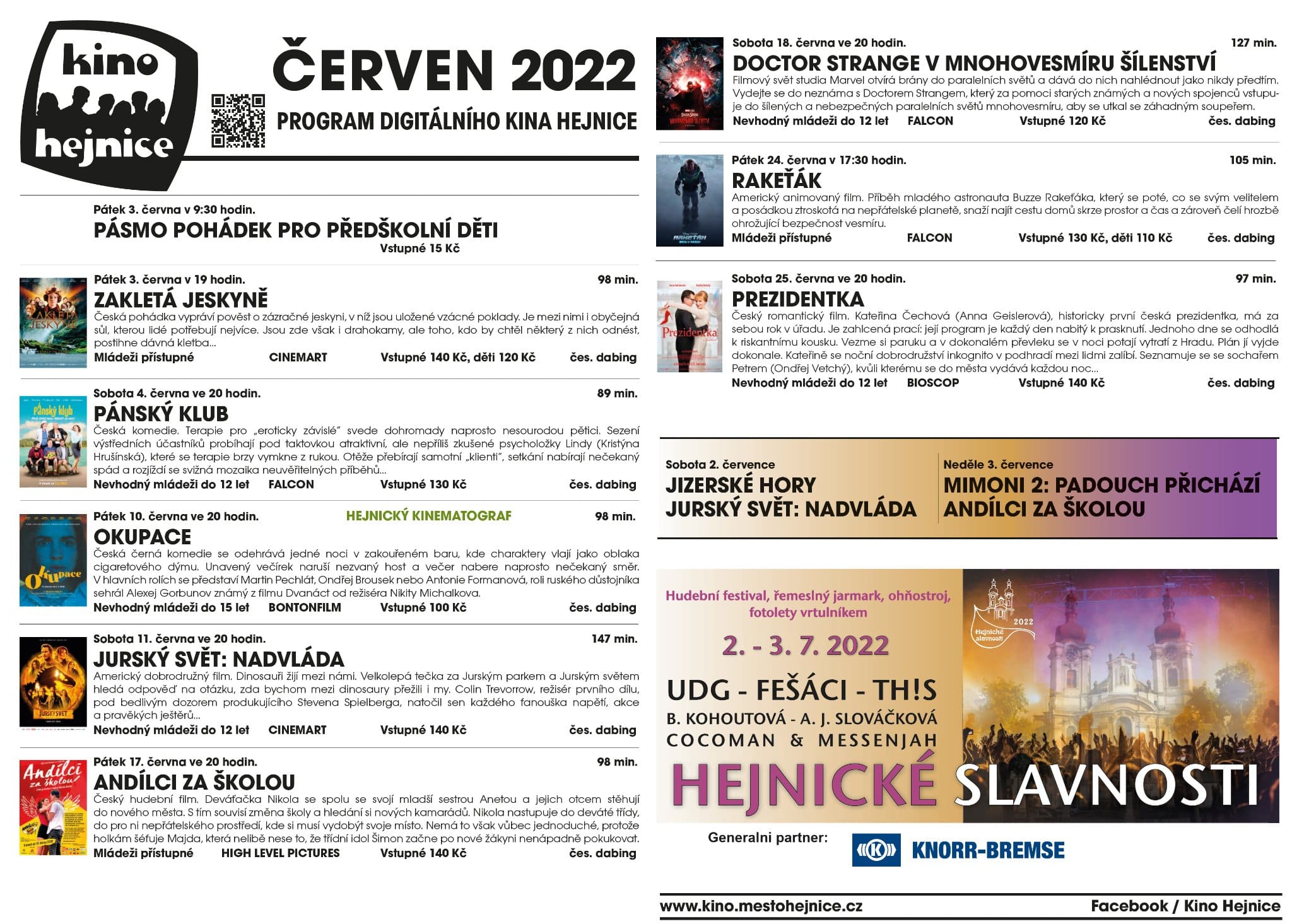 Kino Hejnice nabízí program na červen 2022.