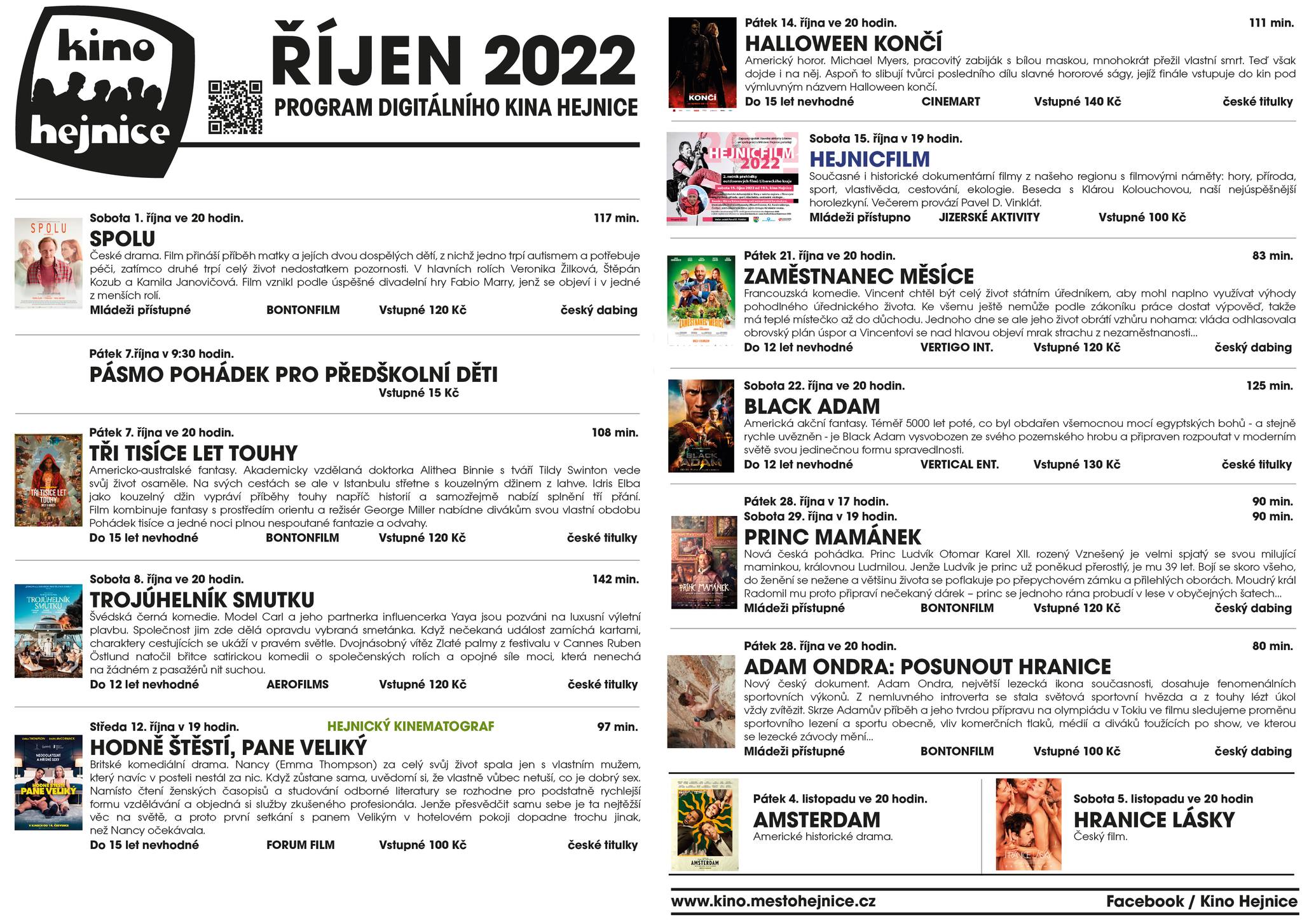 Představujeme Vám program kina Hejnice na měsíc říjen 2022.