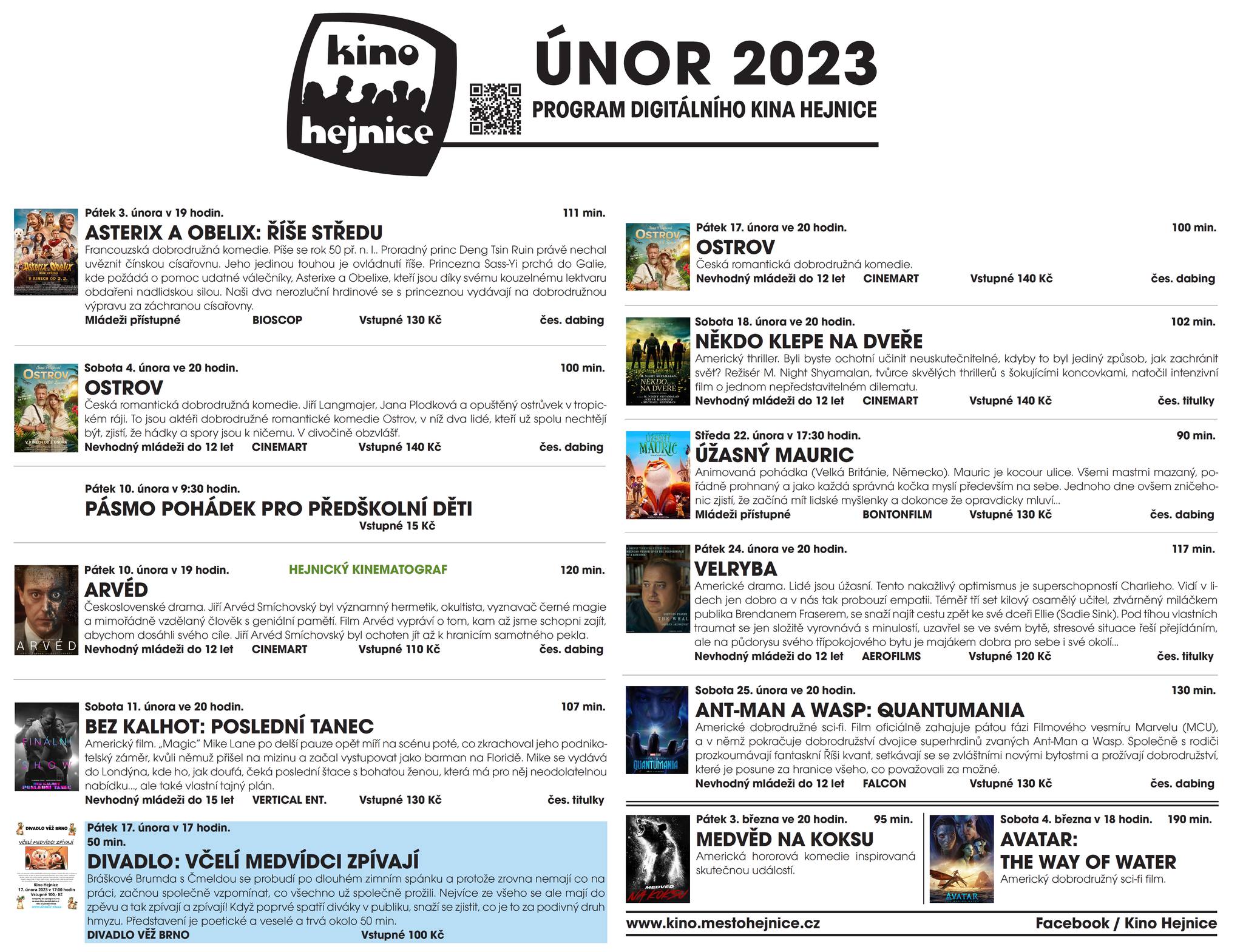 Představujeme Vám program kina Hejnice na měsíc únor 2023.