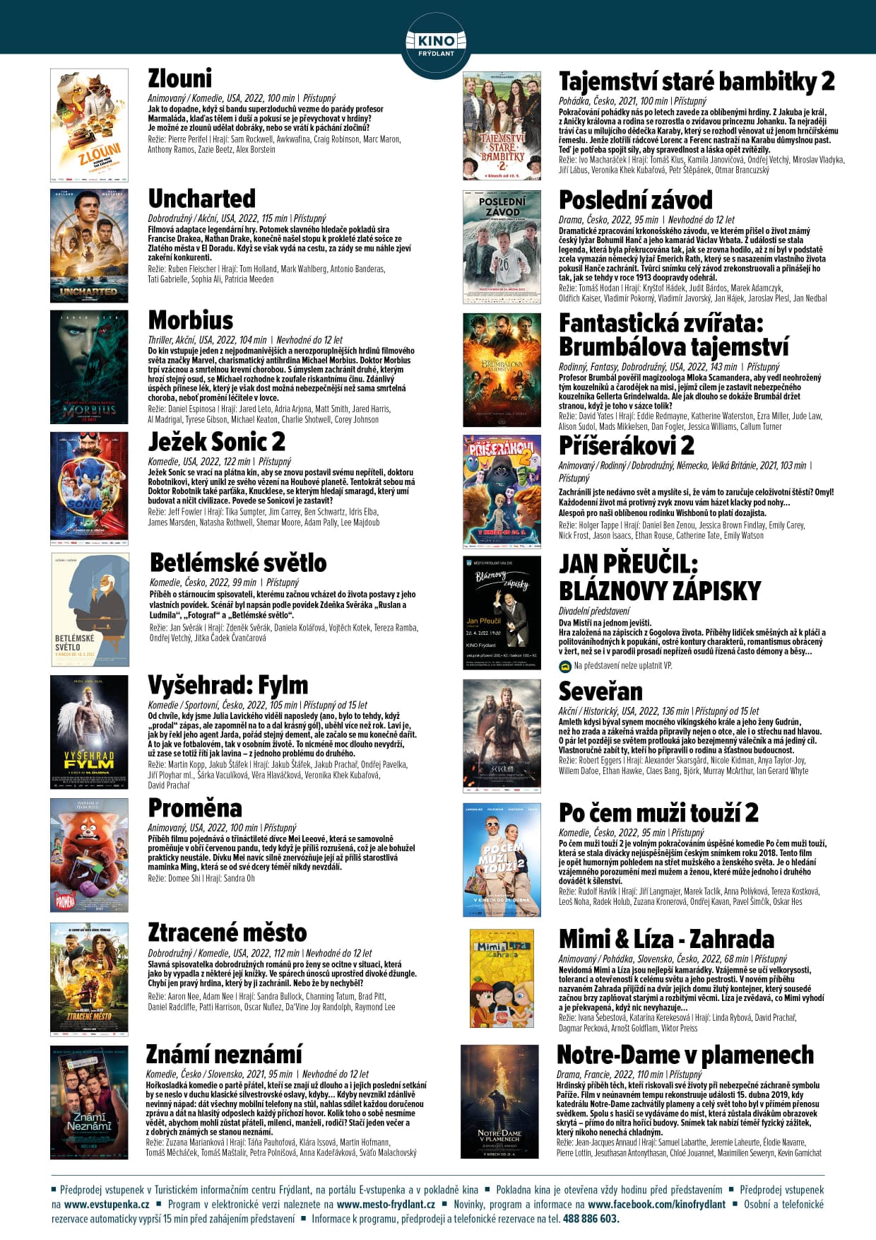 Do kin se chystá několik novinek – mezi nimi například upírská marvelovka Morbius, nebo dětské pohádky Zlouni a Mimi & Líza – Zahrada.