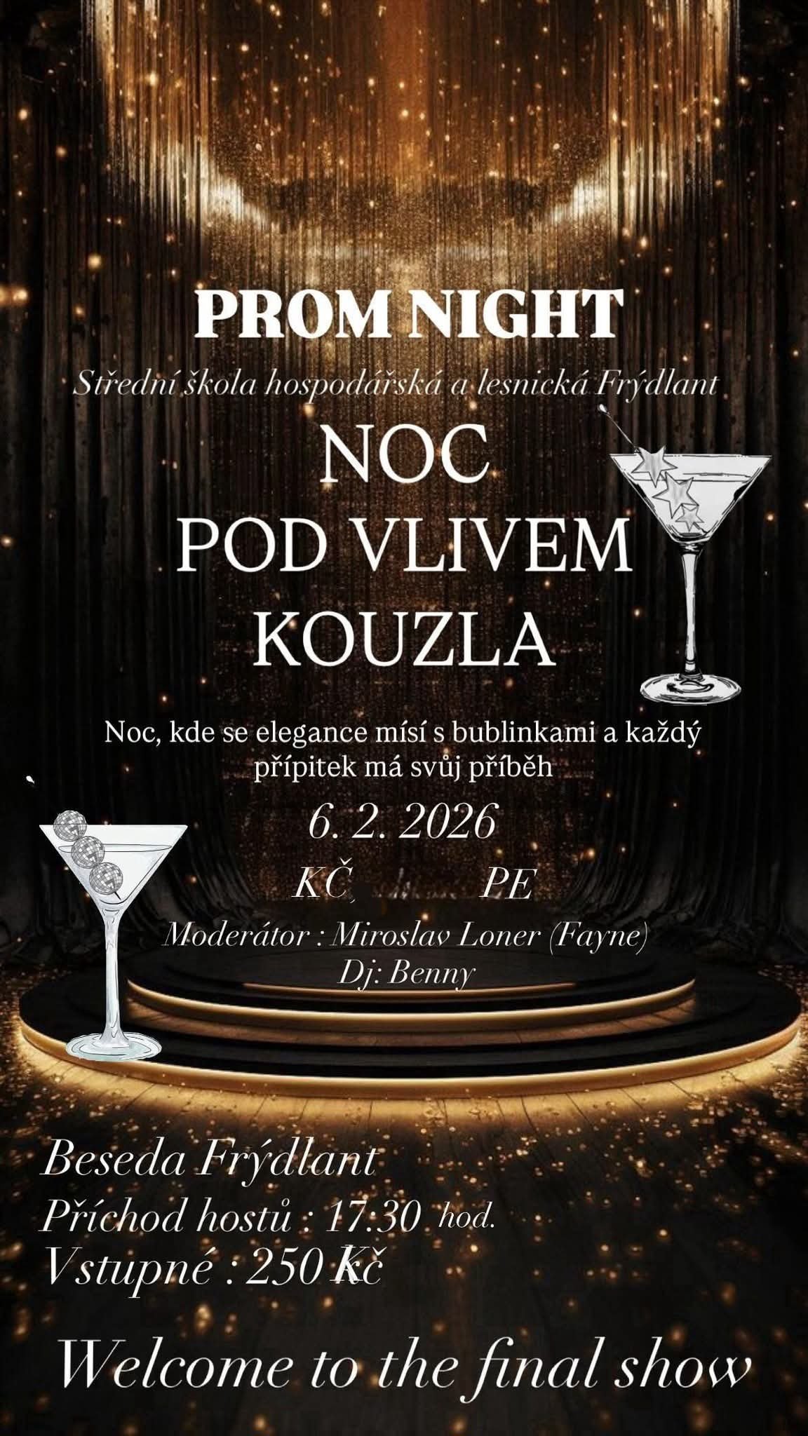Zveme Vás na slavnostní Prom Night – Noc pod vlivem kouzla, kterou pořádá Střední škola hospodářská a lesnická Frýdlant.