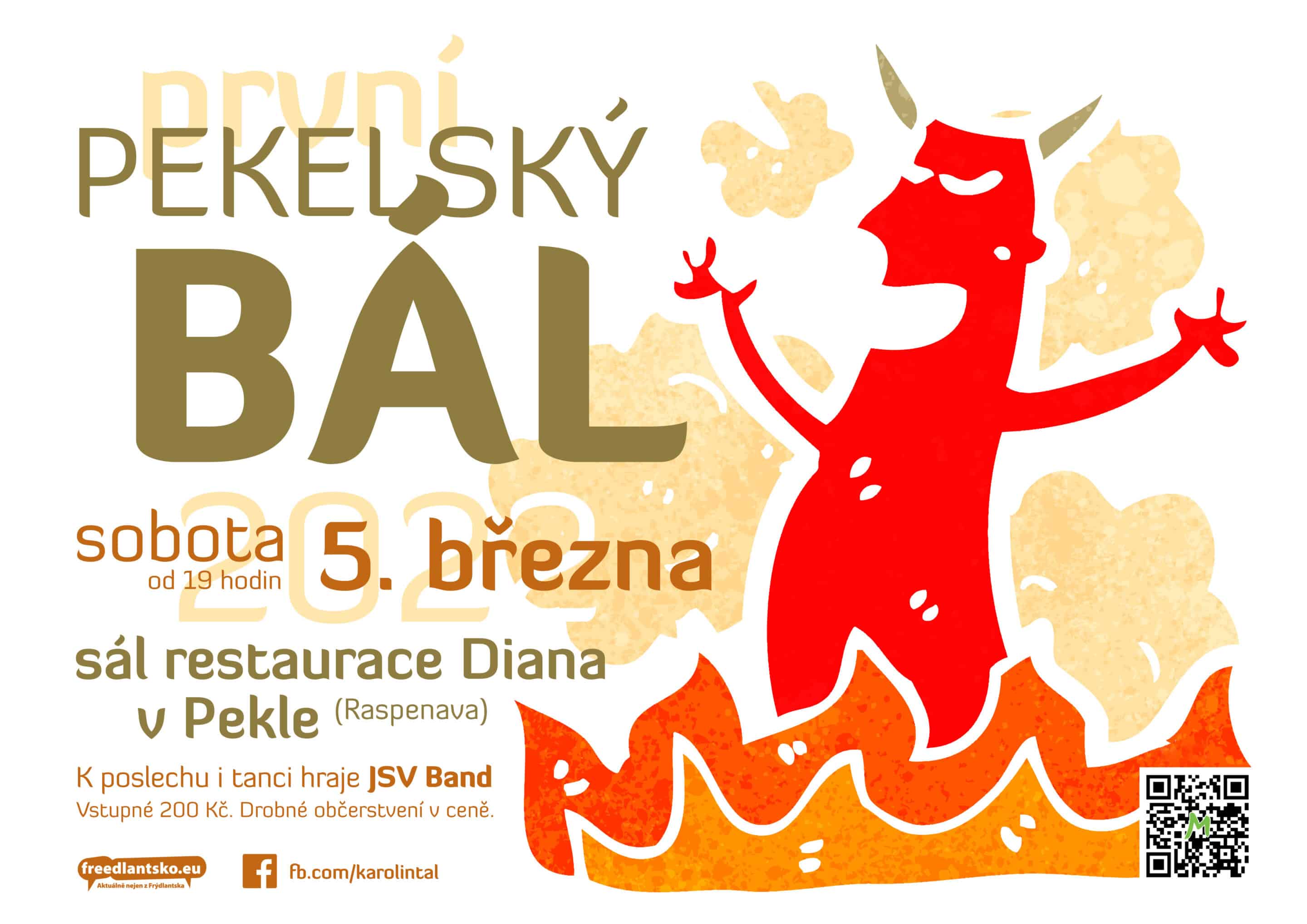 2022so05březen(březen 5)19.00ne06(březen 6)0.00První Pekelský bálPeklo / Restaurace Diana, Peklo 412, 464 01 Raspenava, Česko19.00 - 0.00 (6)(GMT+01:00) Druh akcePles,Veřejná akce,Zábava