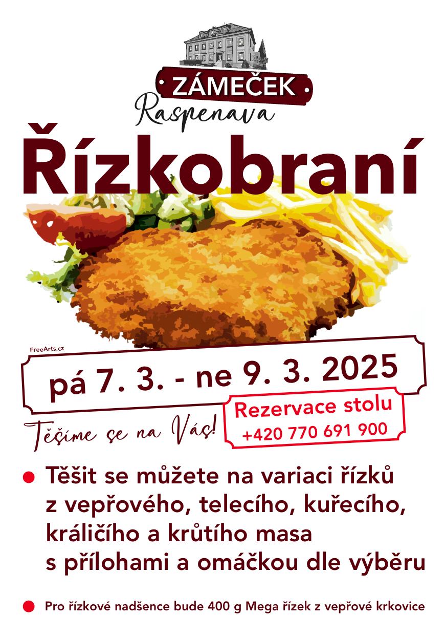 202507březen(březen 7)8.00ne09(březen 9)23.00Řízkobraní v Zámečku RaspenavaHotel Zámeček Raspenava, Fučíkova 500, 46401 Raspenava, Česko8.00 - 23.00 (9)(GMT+01:00) Druh akceGastronomie,Restaurace,Veřejná akce