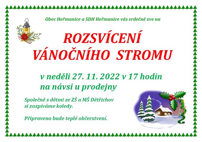 Rozsvícení vánočního stromu v Heřmanicích v neděli 27. listopadu 2022 v 17.00 hodin na návsi u prodejny.