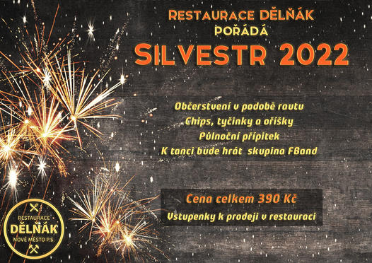 Už víte co budete dělat na Silvestra? V sobotu 31. prosince 2022 v 19.00 hodin jste srdečně zváni do Dělňáku v Novém Městě pod Smrkem. V ceně