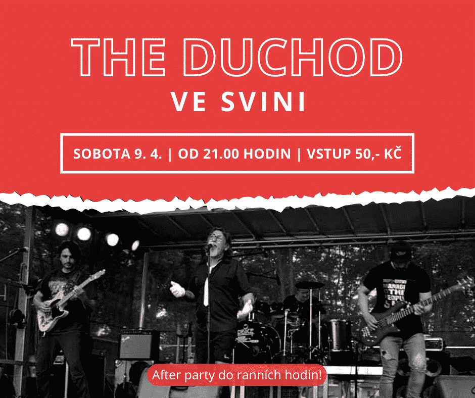 V soboru 9. dubna 2022 od 21.00 hodin vystoupí v Baru jak Sviňa kapela The duchod, hejnické hudební uskupení s vlastní tvorbou.
