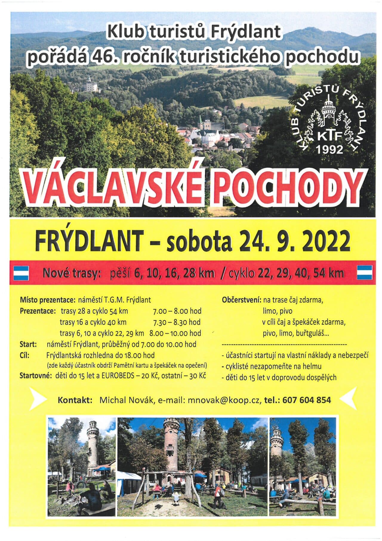 Klub turistů Frýdlant pořádá 46. ročník turistického pochodu. Akce proběhne v sobotu 24. září 2022. Můžete si vybrat mezi pěší (6, 10, 16,