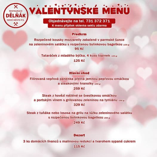 Přemýšlíte co dělat na letošního Valentýna se svou drahou polovičkou? Stavte se v restauraci Dělňák v Novém Městě pod Smrkem na skvělé jídlo. Od pátku 10. února až do