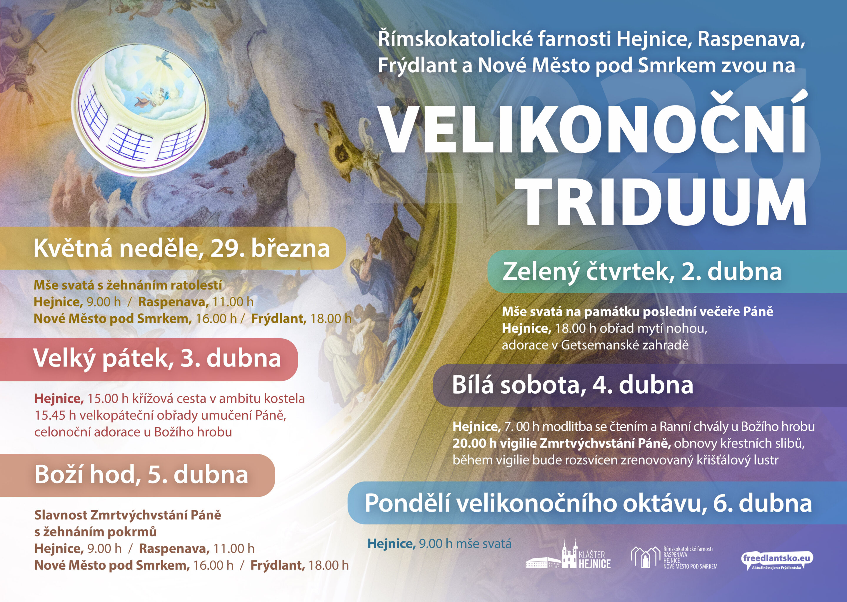 Římskokatolické farnosti Hejnice, Raspenava, Frýdlant a Nové Město p. S. zvou na Velikonoční triduum.
