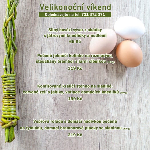 Nechce se Vám o Velikonocích vařit? Pokud ne, zajděte na oběd nebo večeři k nám do Dělňáku. Můžete si vybrat z našeho velikonočního menu.